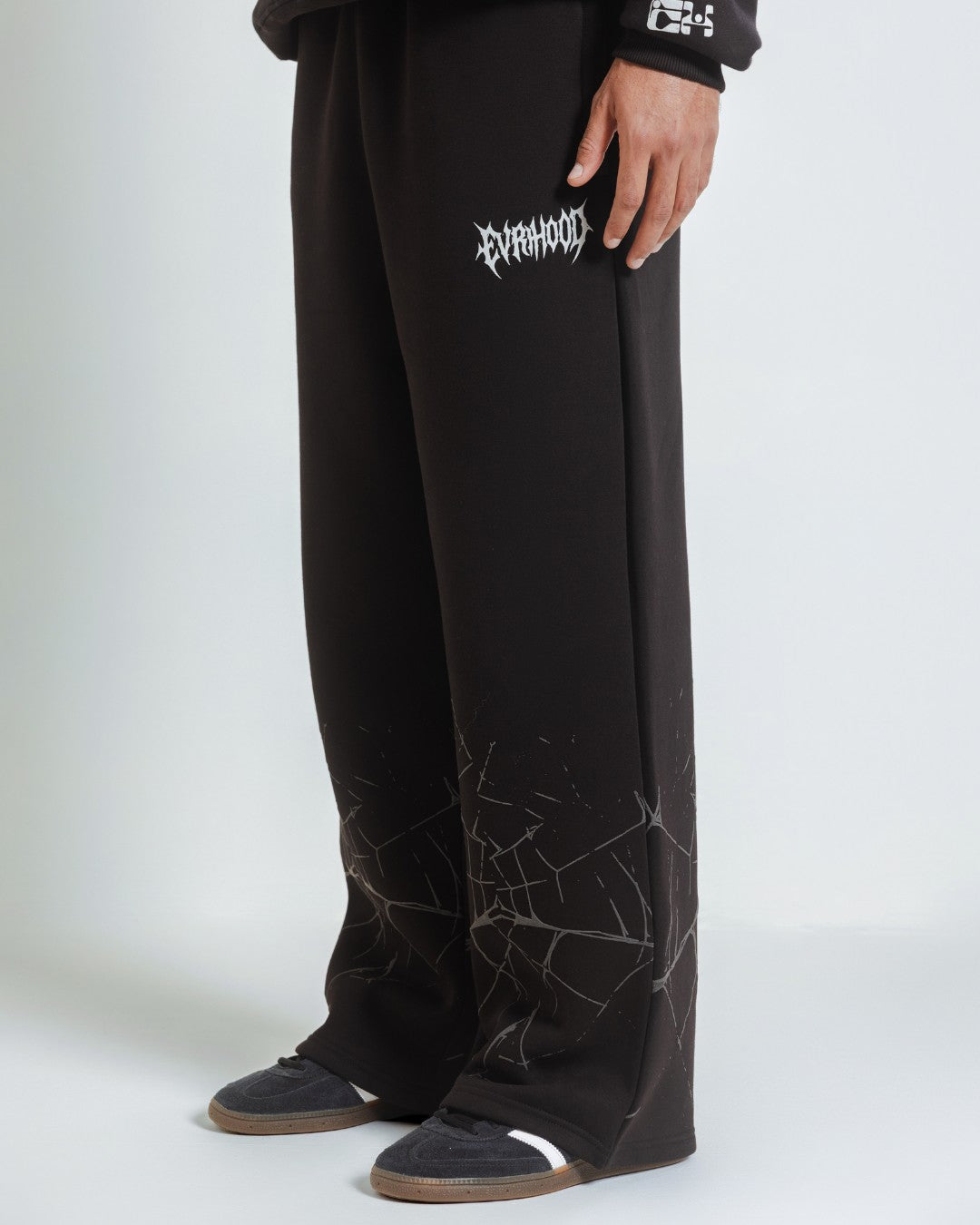 These black fleece joggers are designed to complement the Spider Web Hoodie perfectly. Warm, soft, and shaped for a relaxed fit, they feature subtle branding for a minimal but polished look. Versatile enough for everyday wear yet elevated as part of the full set.